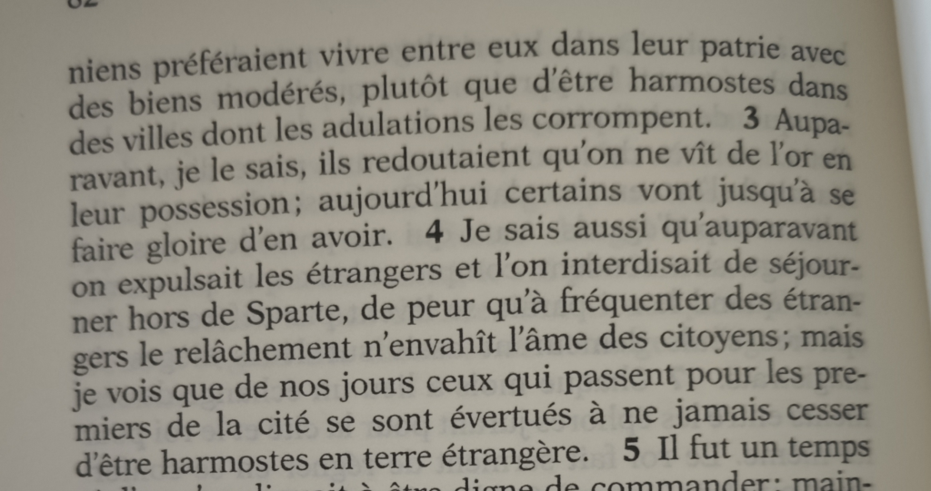 Préservation de l’ordre institutionnel : Les Spartiates redoutaient la corruption venue d’ailleurs, laquelle pouvait menacer leur structure d’élite, leurs valeurs collectives et la discipline imposée aux Homoioi (les « Égaux » (Spartiates)).