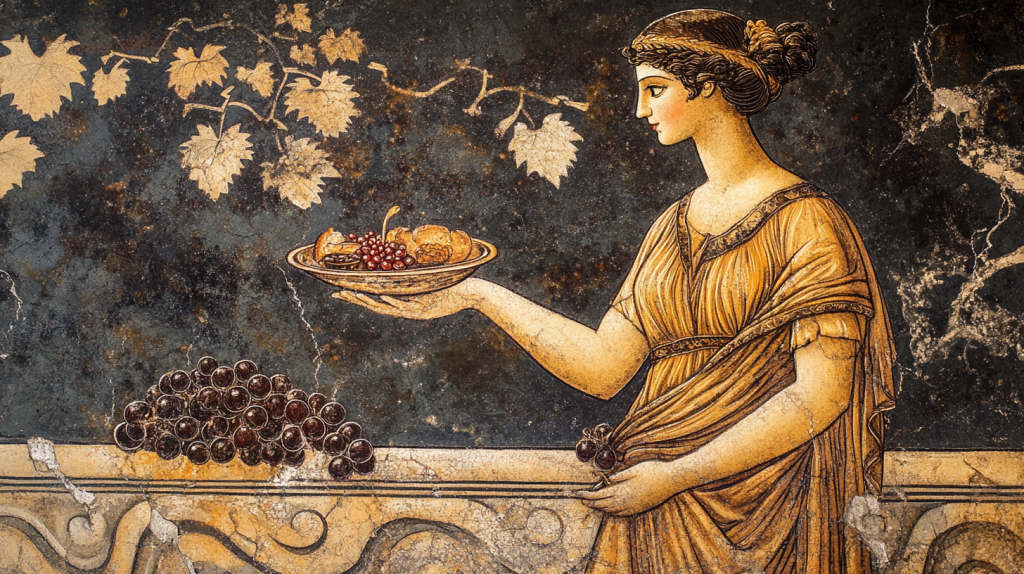 Libations ou prières : On verse une libation pour invoquer la protection de Zeus Xenios ou des autres Dieux protecteurs de la maison. Walter Burkert6 insiste sur ce point : la xénia s’accompagne d’un acte rituel pour consacrer l’hospitalité.
